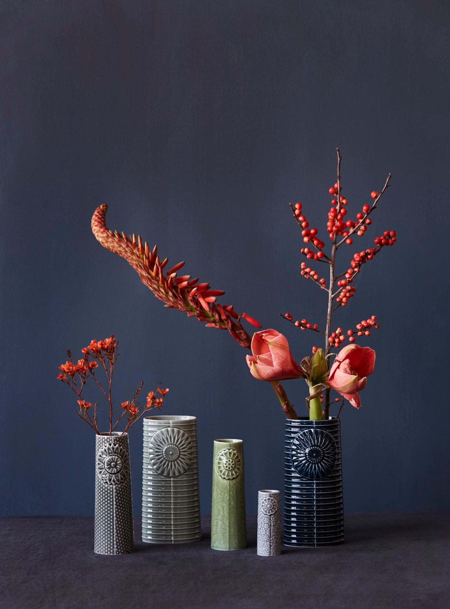 Fallegur vasi fyrir stærri vendi, dökkblár (petrol). Hannaður af Þóru Finnsdóttur