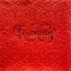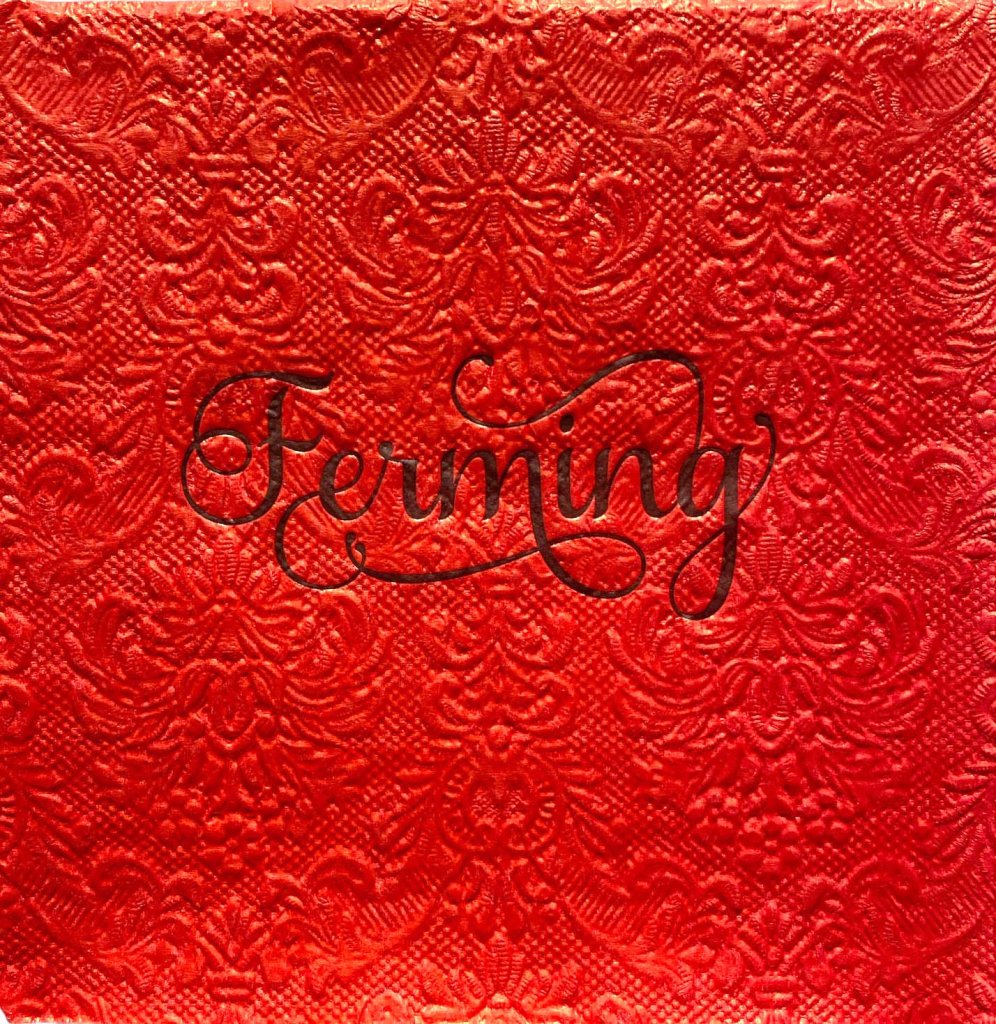 Rauðar upphleyptar perlu servíettur frá Ambiente með skrautskrifað í svörtu ,,Ferming“ á hverja servíettu.