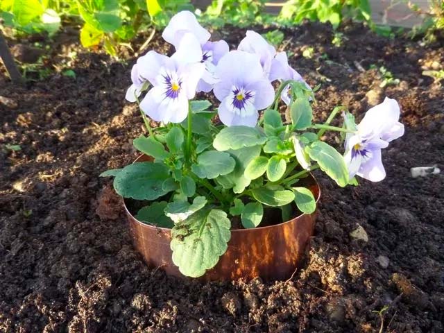 Sniglaband úr kopar sem varnar sniglum aðgang að plöntum.