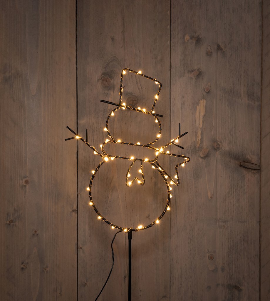 Lítill snjókarl með 56 Led ljós. Ljósið gengur fyrir batteríi og má hafa úti.
