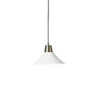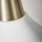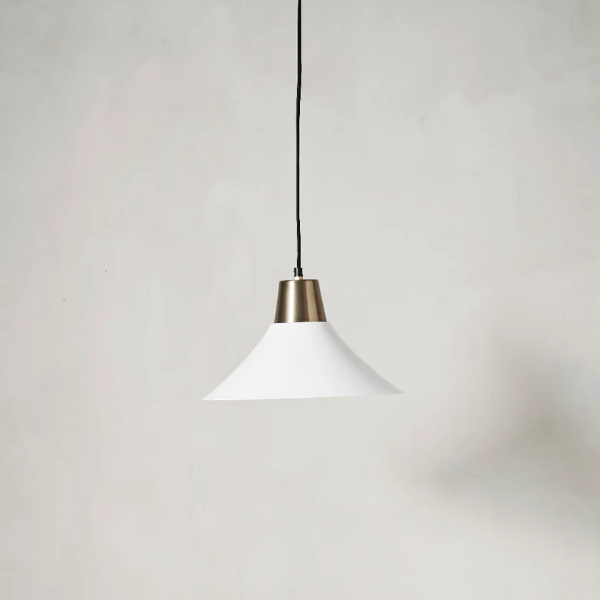 Hvítt og gyllt loftljós með svartri textílsnúru.