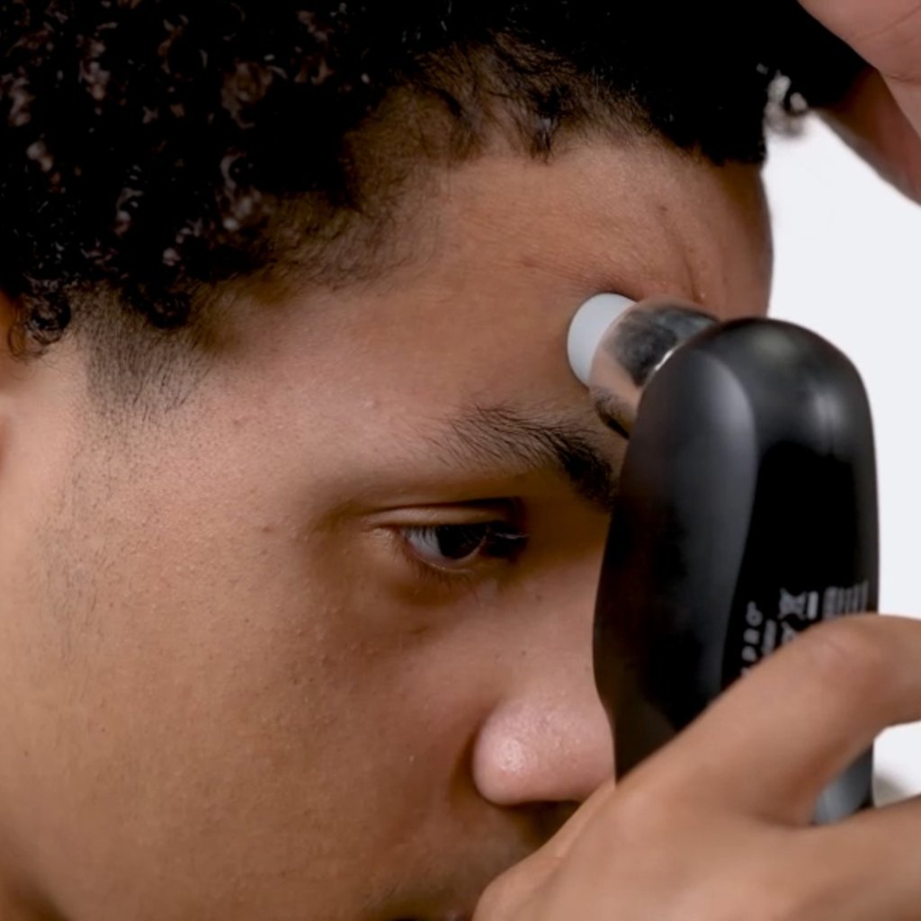 - Þegar vatnið er byrjað að flæða, þrýstu þá hreinsioddinum að húðinni þinni og byrjaði að nota það rólega eftir andlitslínunni. Athugið, passið uppá það að hafa tækið alltaf upprétt.
