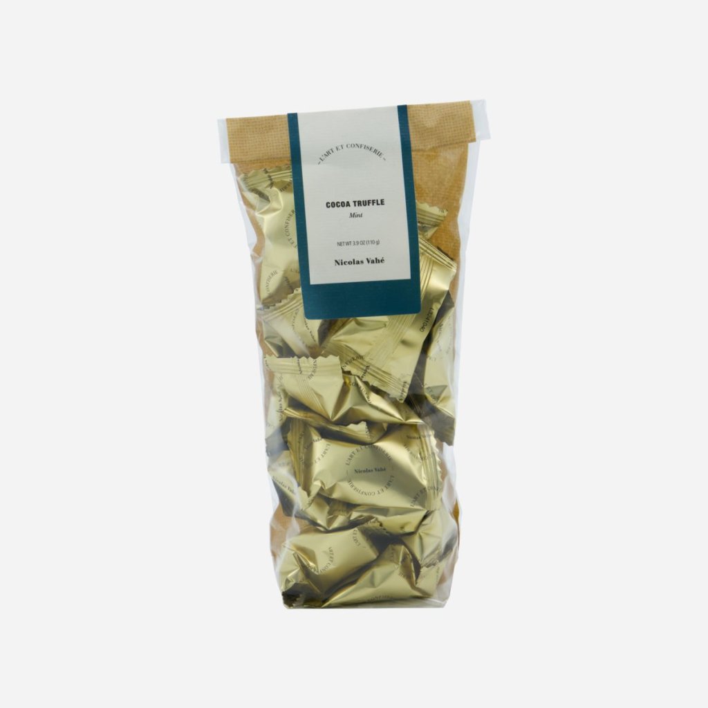 Súkkulaðitrufflur með myntubragði. Sælkera nammi frá Nicolas Vahé sem kemur manni skemmtilega á óvart með smá krunsi í bland við ljúffengt súkkulaði. Einfaldlega of gott til að tíma að deila með sér. Við mælum hinsvegar með því að deila með vinum og fjölskuldu því þú munt slá í gegn með þessu æðislega súkkulaði.