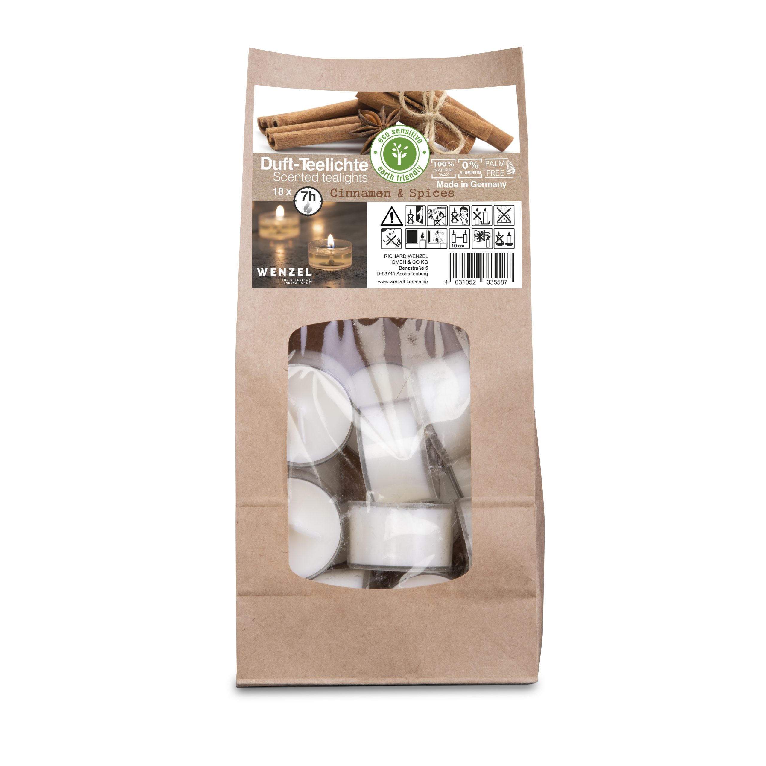 Falleg teljós frá Wenzel með kanillykt, koma 18stk saman í poka. Kertin eru í glærum glösum.