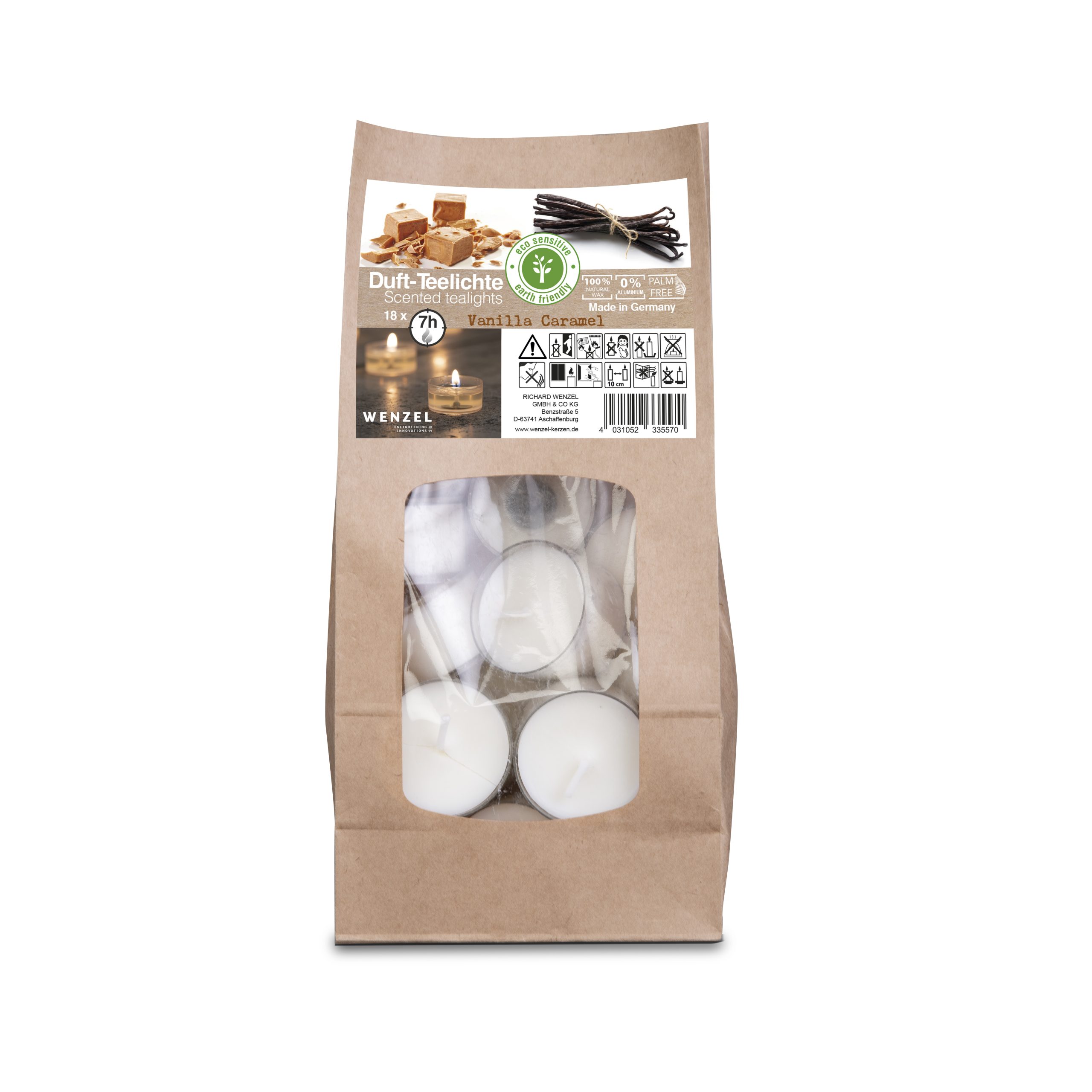 Falleg teljós frá Wenzel með vanillu og karamellulykt, koma 18stk saman í poka. Kertin eru í glærum glösum.