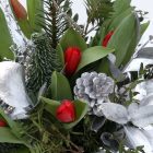 Túlípanabúnt með blönduðu greni og silfurlituðum könglum og greinum.