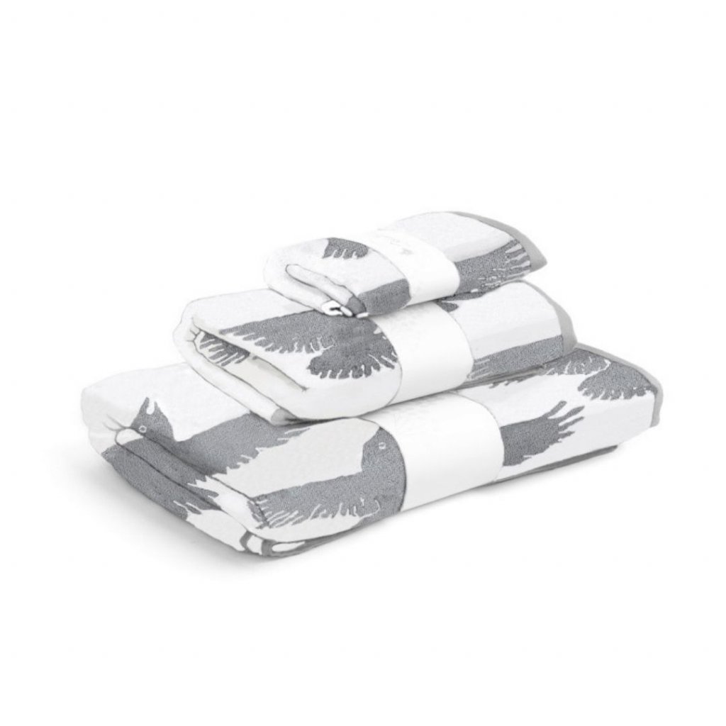 Mjúk og falleg gæðahandklæði frá Vorhús með hrafnamynstri.