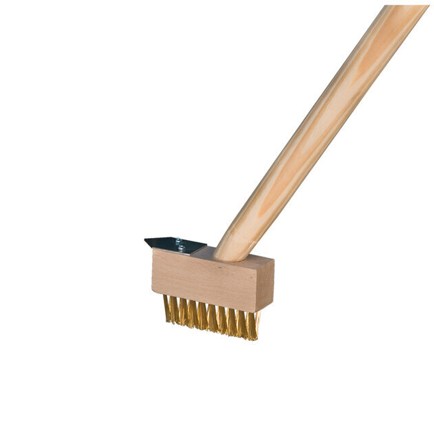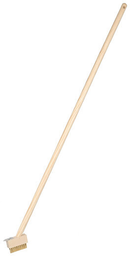 Vírbursti með illgresisjárni með löngu viðarskafti.