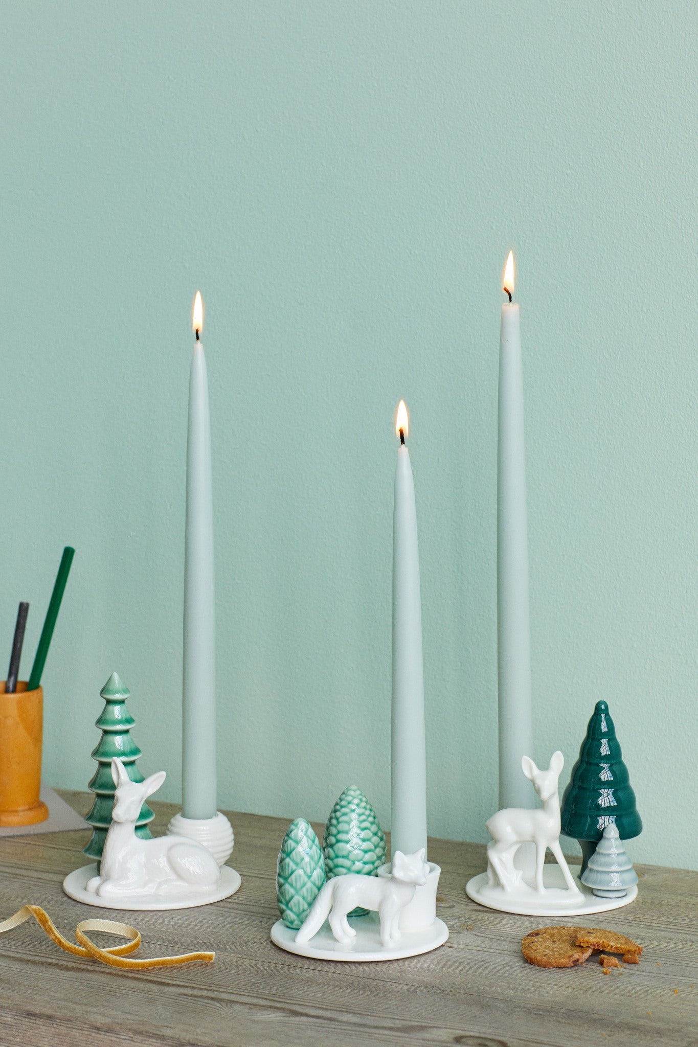 Fallegur platti með trjám, bamba og kertastæði. Kertastæðið hentar fyrir 2,2 cm dinnerkerti.