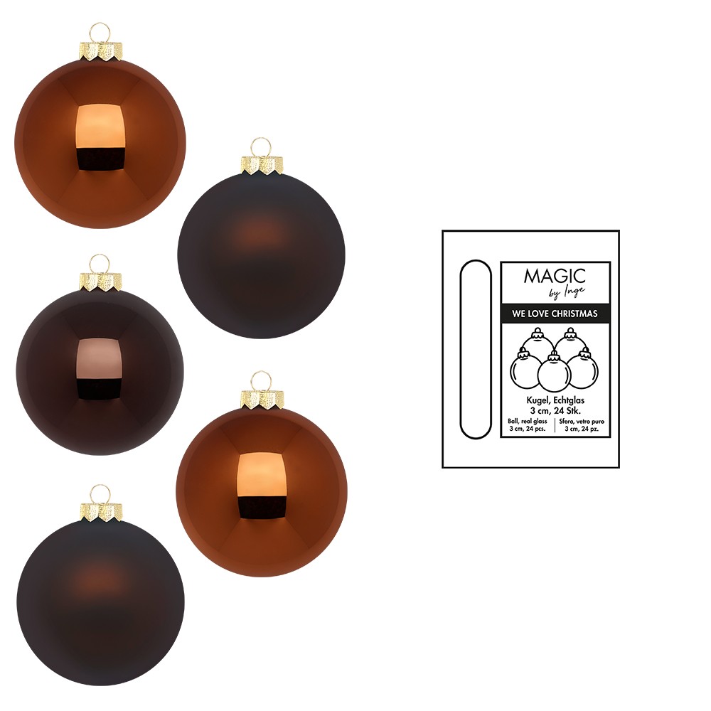 Jólakúlur í boxi 24 stk, 3cm - brúnar