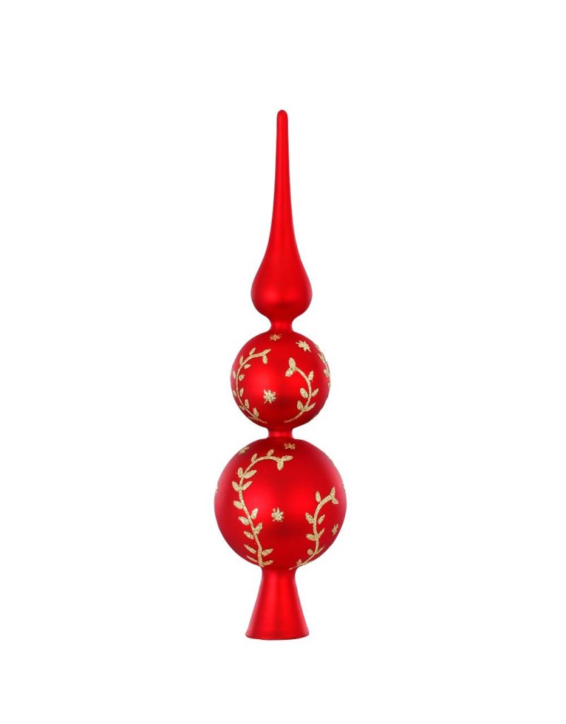31 cm rauður jólatréstoppur með gylltu skrauti. Kemur í fallegri gjafaösku.