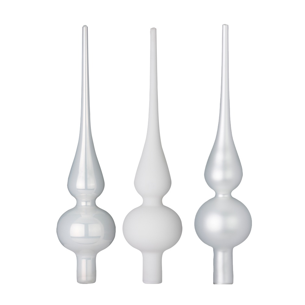 Þrjár týpur af jólatréstoppum. Hvítur mattur, hvítur glans og silfurlitaður