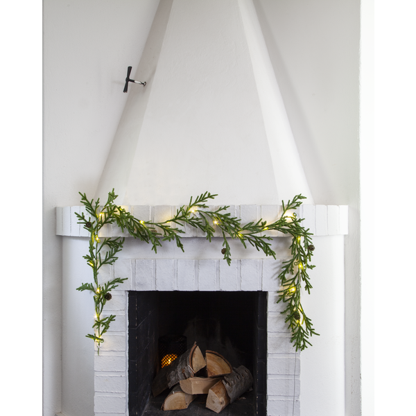 Gervi grenilengja með 20 LED ljósum og könglum og örlitlu glimmeri. Serían gengur fyrir batteríum.