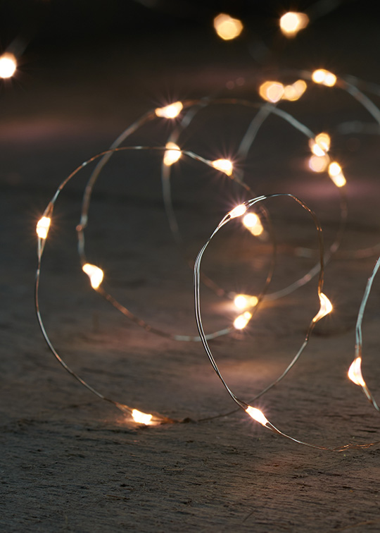 Falleg nett LED batterís ljósasería á silfur vír með hvítum ljósum (warm white).